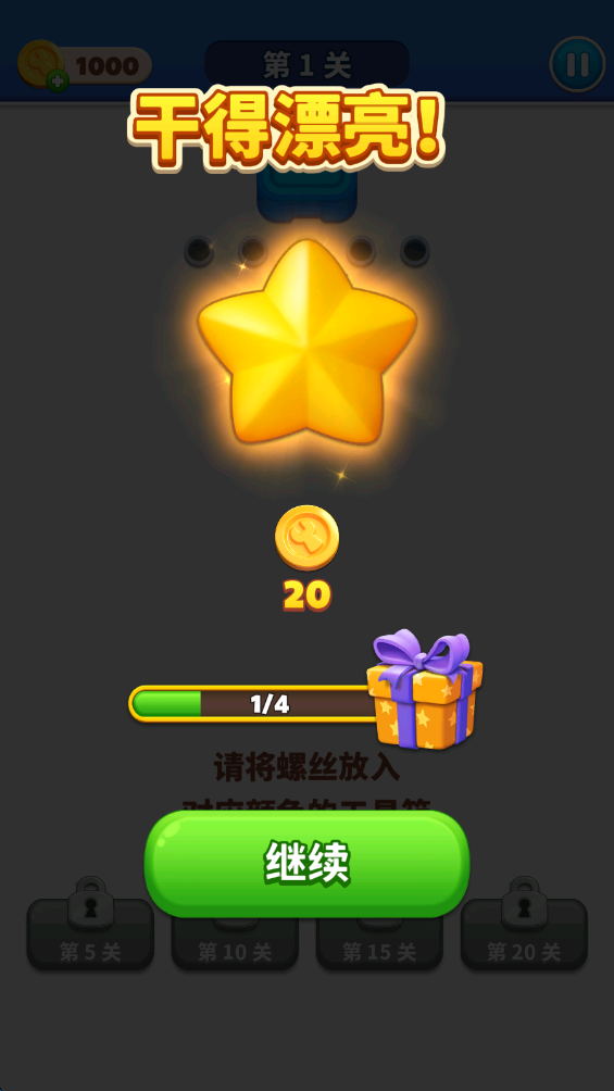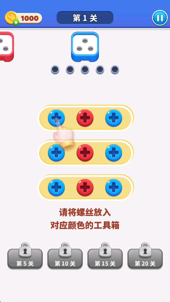 4.上方有一个颜色的工具箱,将螺丝放入对应颜色的工具箱内。