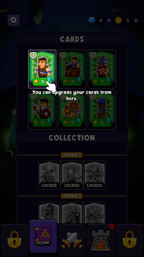 3.完成基础任务后,玩家解锁卡牌手牌系统,可同时持有5张卡,需合理管理手牌数量与费用。