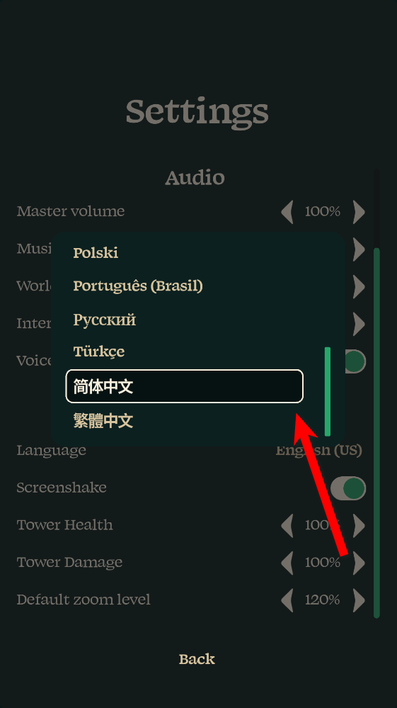 3.向下滑动,找到简体中文选项,选择之后即可。