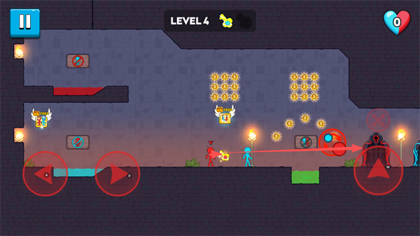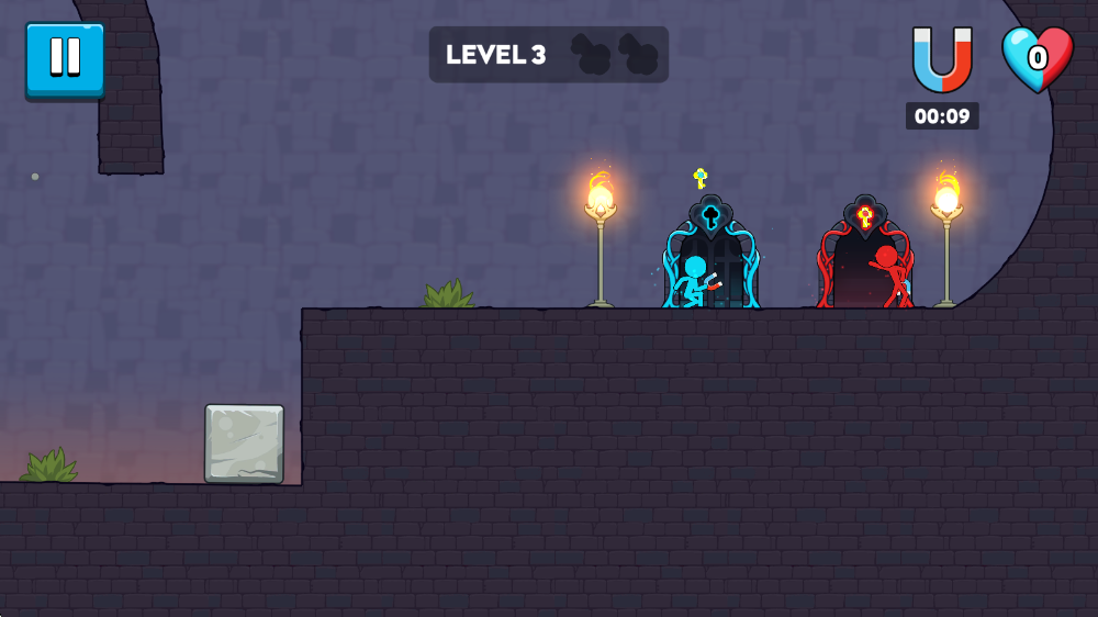 冰火火柴人是一款以属性协作为核心的双人解谜冒险游戏,在这款充满巧思的游戏中,玩家将同时操控冰与火两位火柴人英雄,穿越布满元素陷阱的奇幻迷宫。游戏精心设计了三大主题章节共60个渐进式关卡,从藤蔓缠绕的秘境森林到机关密布的远古城堡,每个场景都暗藏与环境完美融合的致命机关。动态变化的迷宫结构配合随时触发的压力板、移动平台与元素屏障,创造出让玩家时刻保持紧张感的解谜体验。