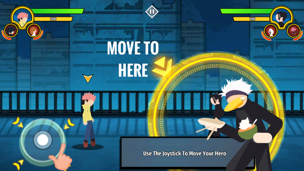 2.移动左下角的轮盘靠近敌人。