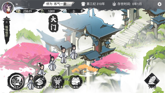 6、每个月开始会在宗门大门处出现新的弟子,玩家可以选择招募或者遣散。