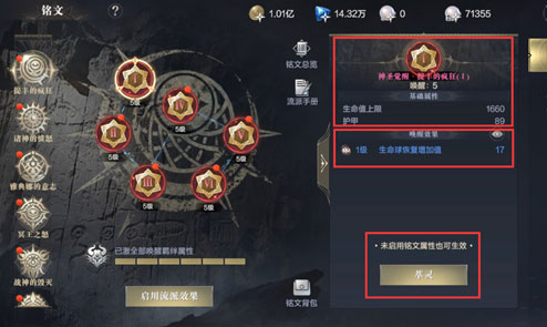 铭文觉醒——每个铭文都可以觉醒两次,觉醒后的铭文将会提升大量的基础属性。