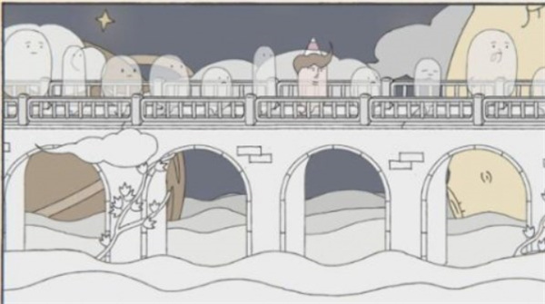 成就1 - 叉子:玩家掉入水中,向后漂流时会被叉子丢回到桥上。