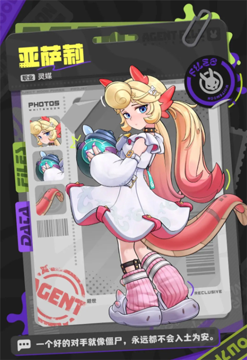 「亚萨莉」是蝾螈家族的最后一员, 但很遗憾,命运却没有为此眷顾于她。亚萨莉幼年时遭到过凋零污秽的侵蚀,在切除了大量病变组织后,得益于强大的再生能力,她仍然恢复了健康,但那些曾经遭受过的非人痛苦却从未散去。也许正因为这段生死一线的经历,她在灵媒上觉醒了惊人的天赋。传说她的身后,长久地站立着整个家族的幽魂。