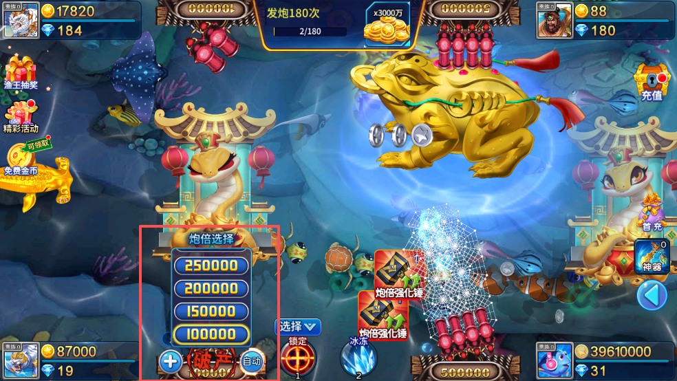 2.玩家可以自动调整炮台的倍数