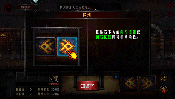 2、按住右下方的向左按钮或向石按钮即可移动角色;