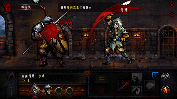 第三关需要注意的是这个敌人,皮厚血多,而且会帮小喽啰抗伤害,多用毒属性攻击和带流血效果的技能就能迅速削弱他。