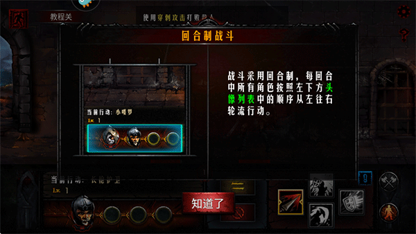 6、战斗采用回合制,每回合中所有角色按照左下方头像列表中的顺序从左往右轮流行动;