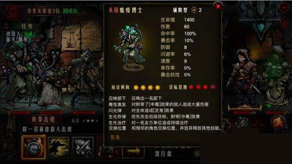 第一个BOSS出现!长按BOSS就能查看他的技能和状态属性,基本都是用毒的技能