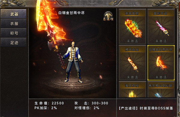 各种武器、衣服、称号等激活后,可提高生命值、攻击值、怪物增伤等属性。