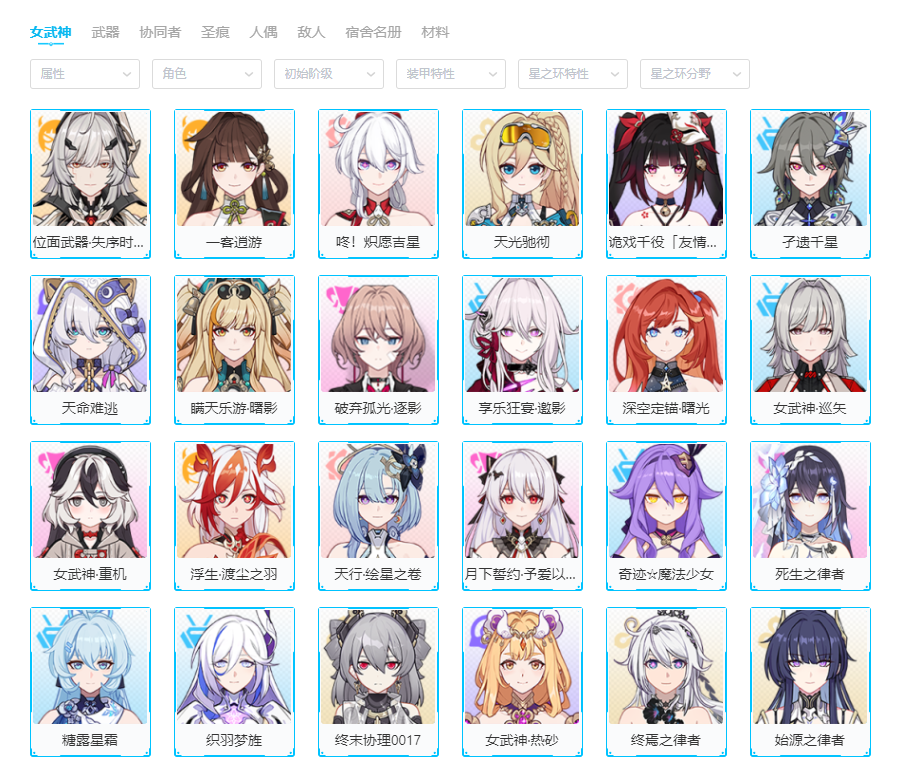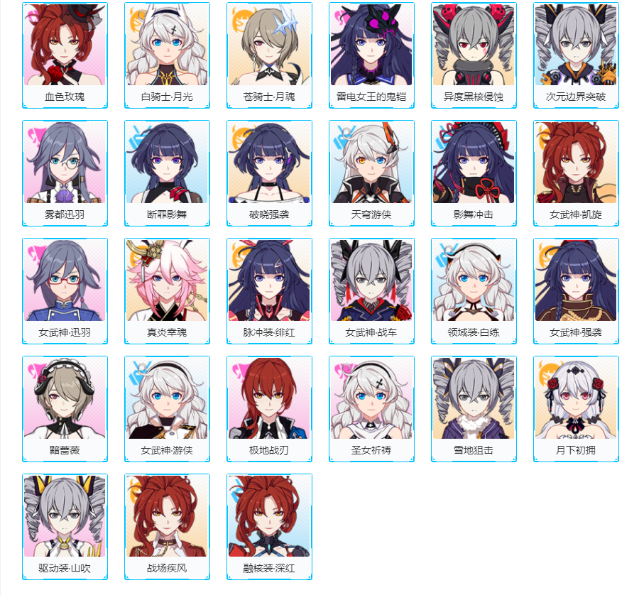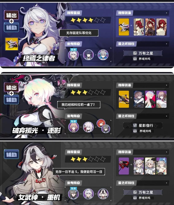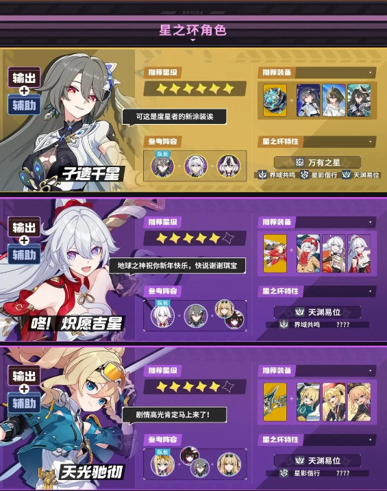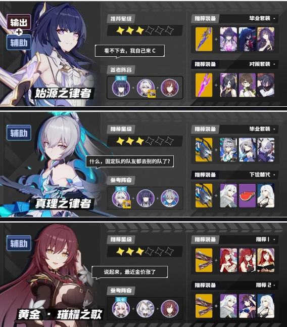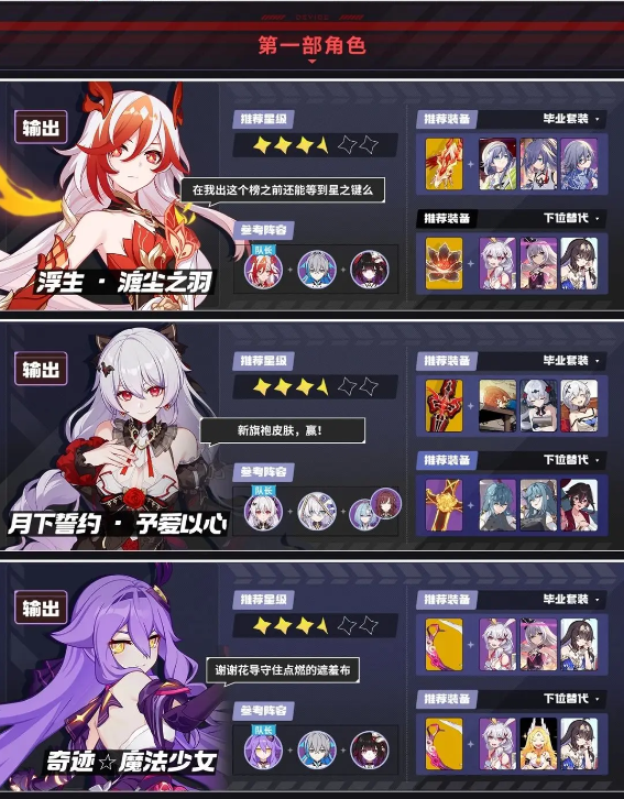 其他角色:A级角色「月下初拥」、A级角色「驱动装·山吹」、A级角武神·荣光」