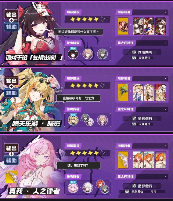 5)调整了「超弦空间」玩法内,「回响环境」的天气效果:由“队伍里每有一个【界域共鸣】特性角色,全队角色造成的全伤害提高10%;【世界之星】激活时,全队角色造成的全伤害提高40%”调整为“队伍里每有一个【界域共鸣】特性角色,全队角色造成的全伤害提高15%,上限30%;【世界之星】激活时,全队角色造成的全伤害提高40%”。