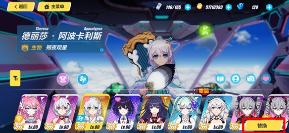 4.选中想要更换的角色后,点击替换就可以了。替换后会回到主界面。