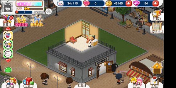 4、在宣传时还有几率捡到一两个钻石以及礼物、体力药等道具,同时也能回复少量人气值,偶尔运气好还能得到个家具。如果不想耗费体力,也可以派遣借来的店员去宣传,但也需要该店员的体力上限大于所需耗费的体力才能成功开始
