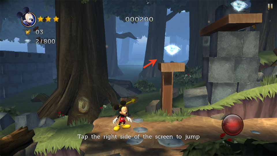 3、这里我们可以通过踩到木偶头上蹦到右边拾取钻石。