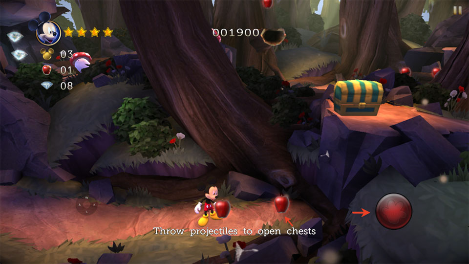 5、最后拾取苹果,可以点击右下角图案来进行攻击。