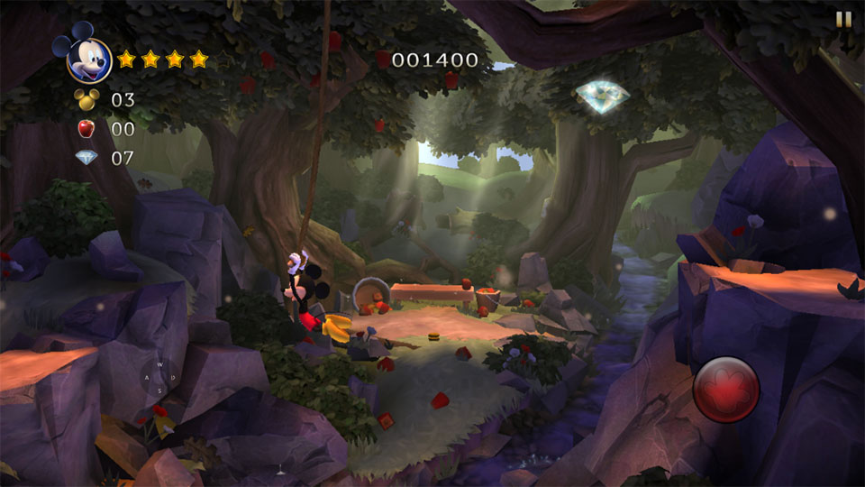 幻影城堡是一个横向卷轴是的冒险闯关游戏。游戏主角是大家都熟悉的米老鼠,玩家扮演米老鼠千辛万苦从巫女手中救出米妮。游戏的操纵手感、音效和画面受到大家喜爱,在传统的基础上做了大幅度的创新。游戏画面让人惊叹,仿佛置身童话世界。