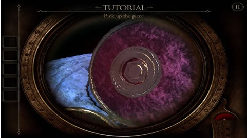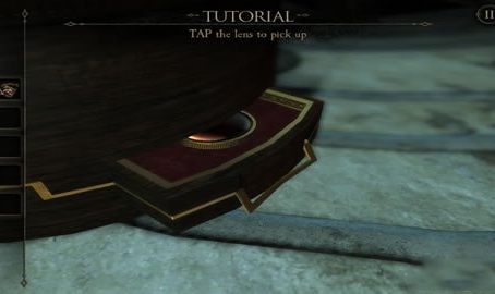8、把我们刚弄到的完整的眼镜带上,对着这个圆盒子盖看上去,我们会发现有一个红色的指纹,这是我们点击指纹处。把手按倒红色指纹上去,这时我们会发现中间的小圆块会打开,我们会得到一个六边形铜片。
