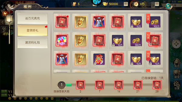 1、进入游戏后就能够领取丰厚的奖励,帮助我们快速上手