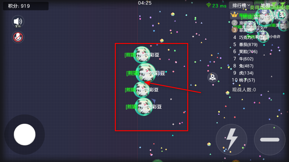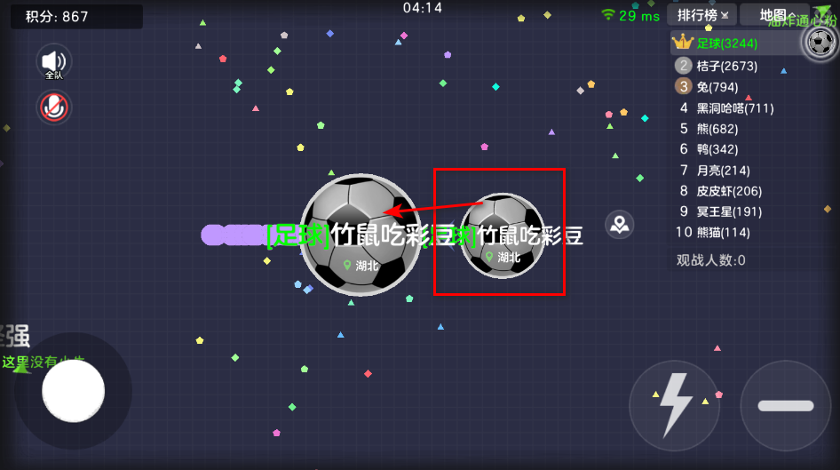 3.如果是多球的情况,可以使用内吐,就是点击中间某一个球,然后一直吐球