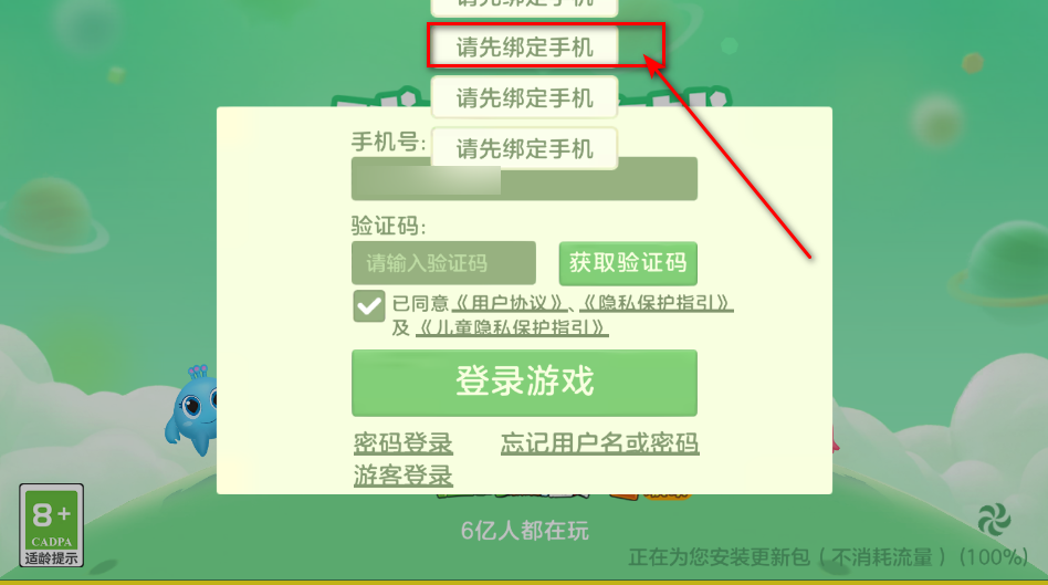 1.新账号小编建议大家先用游客登录,然后在用手机号绑定的形式,因为很多时候,会提示我们请先绑定手机。